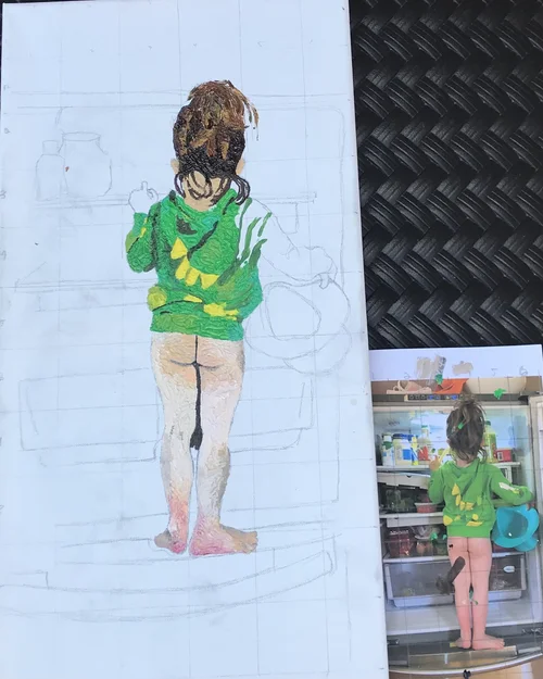 During a live drawing class, I had an eccentric model with electric red hair. She was so inspiring, I just had to take her across mediums.