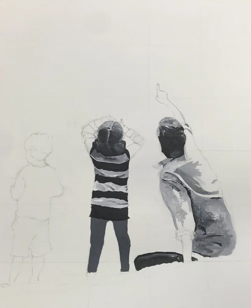 As an homage to talented graffiti artists of our time, my Hamtramck Middle School Students and I developed a segment on Stencils and Spray Paint Artwork. Using found objects as subject matter and my supplies, this piece illustrates how you can flatten the surfaces of an object into both the positive and negative spaces of a stencil.